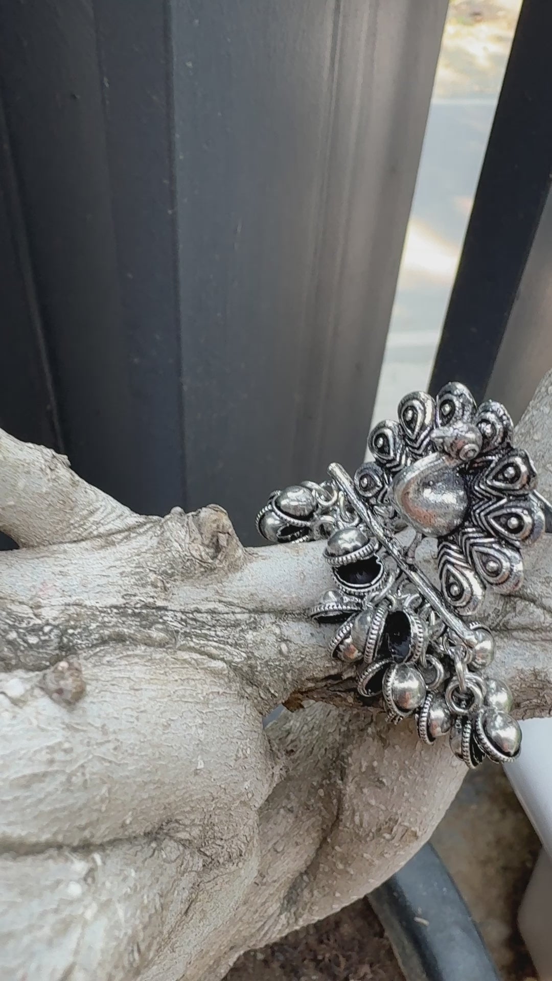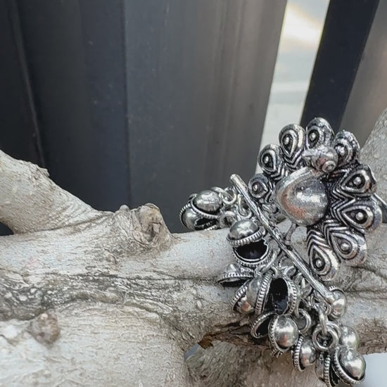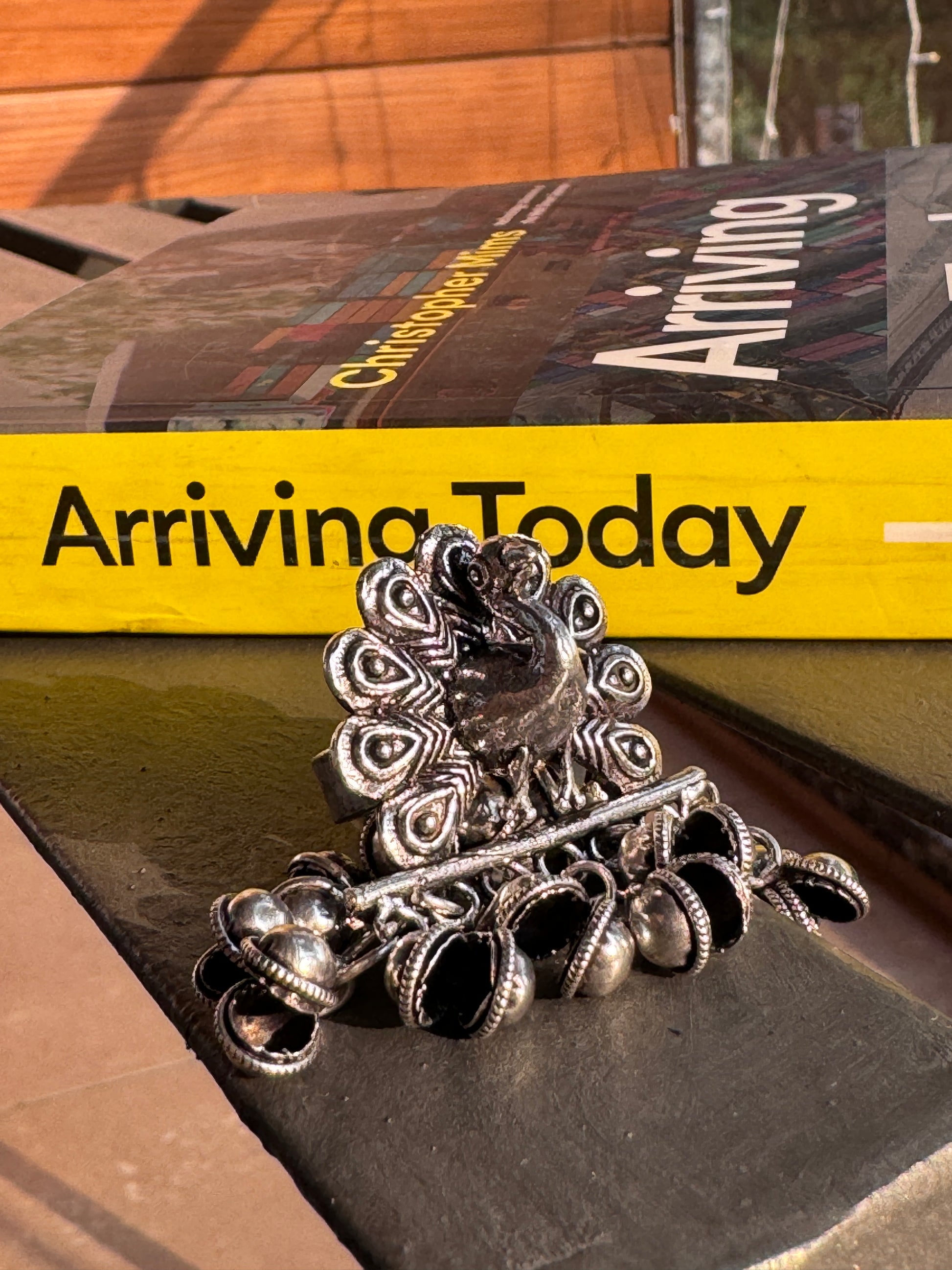 Salvanity German Silver Mayur Peacock Finger Ring with little bells