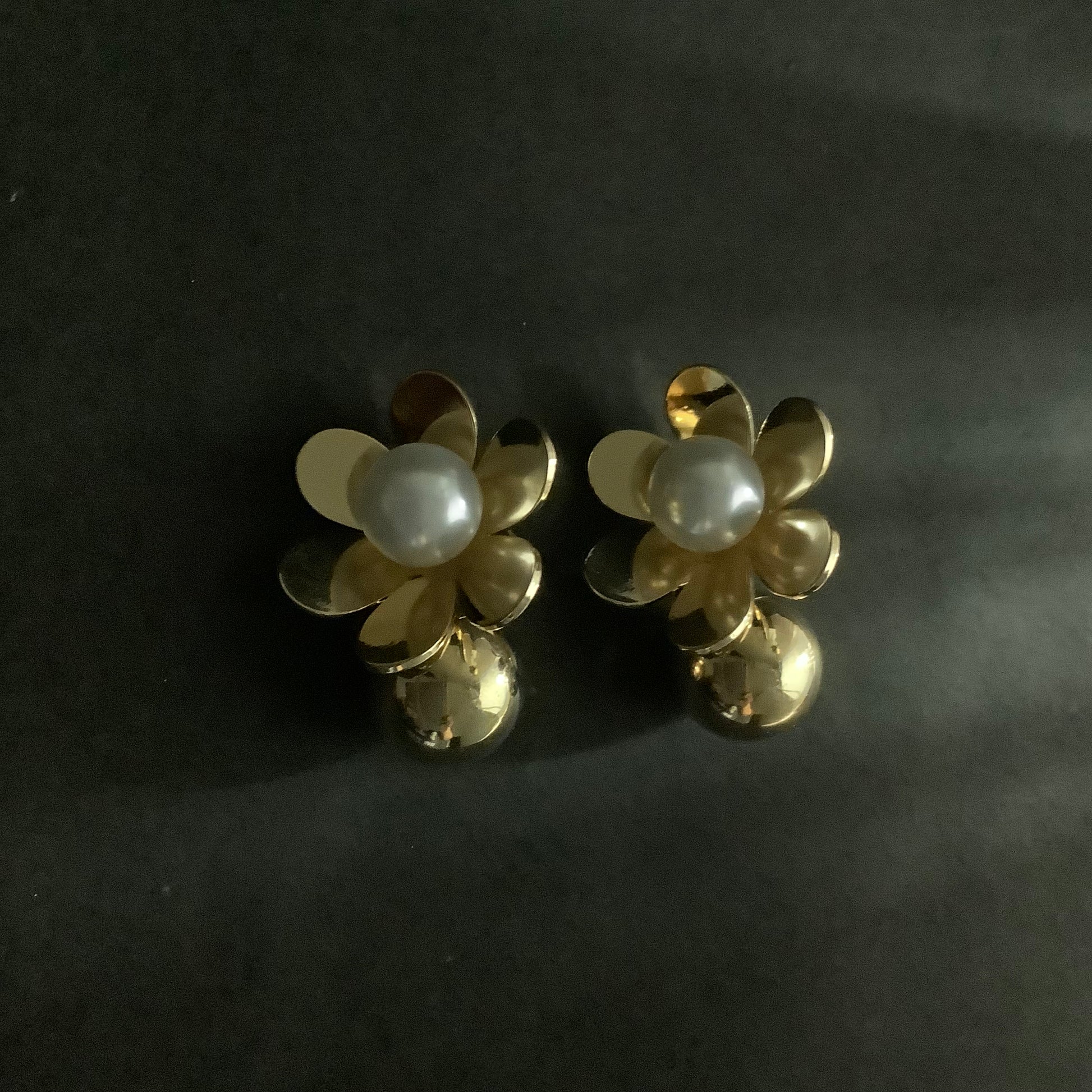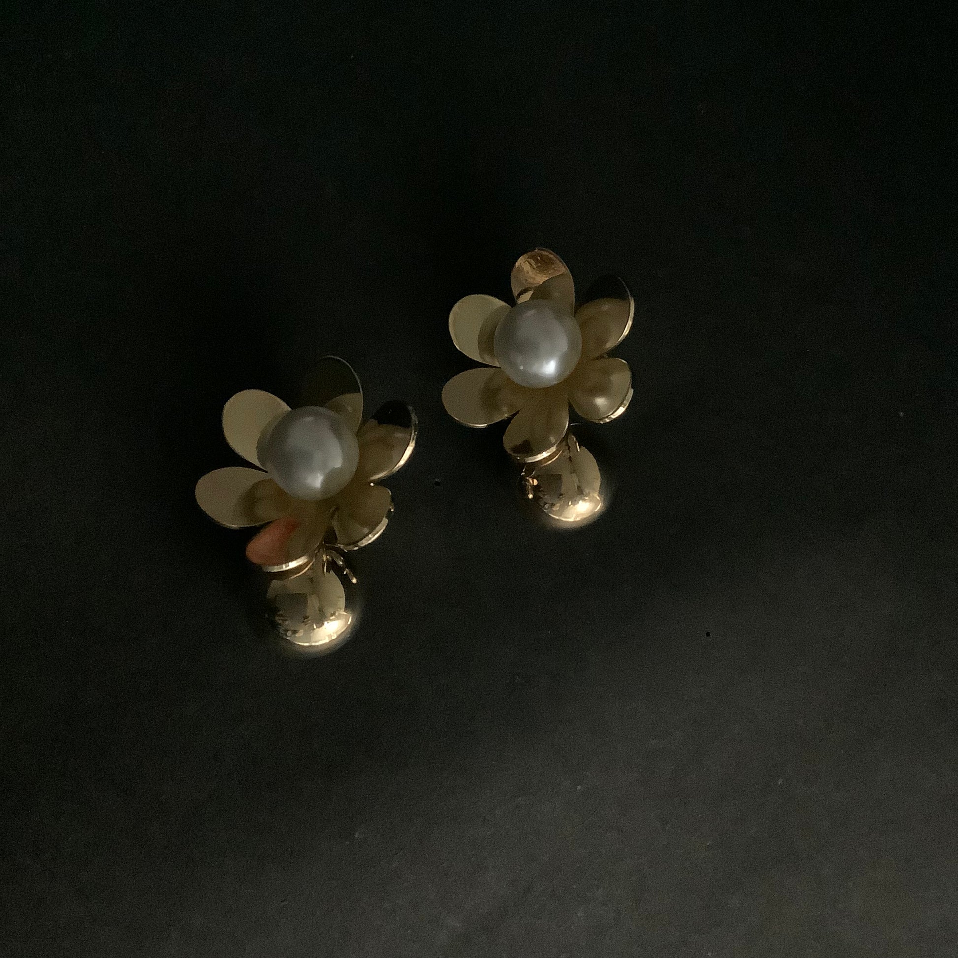 Salvanity K-POP Golden Floral Pearl Pops Flower Earrings